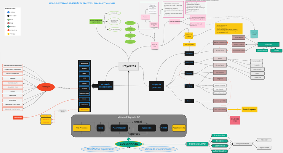 This business intervention work aims to design a practical methodology PMI supported by the PMI for the management of digital transformation projects based on the KPO services offered by Equity Advisors, for this a description of the research problem that yields the following questions, Is it necessary to have a model for the management of digital transformation projects in Equity Advisors, What is the appropriate methodology for the management of digital transformation projects in the KPO services offered, as support for organizational improvement in Equity Advisors, What is the appropriate methodology for the management of digital transformation projects in the KPO services offered as support for organizational improvement in Equity Advisors? To answer these questions, a conceptual and systematic review of the structure of the disruptive technologies that make up the Digital Transformation and its support in Project Management is carried out in order to analyze the success factors in the implementation of projects of this nature in private sector organizations and from these, build the guidelines to consider in the implementation in the KPO services of Equity Advisor.