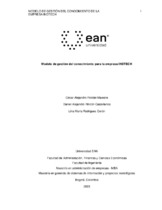 Un modelo de gestión del conocimiento se define como un sistema organizado que integra procesos, políticas y tecnologías con el propósito de agilizar la creación, captura, almacenamiento, distribución y aplicación efectiva del conocimiento dentro de una organización, su objetivo fundamental radica en optimizar la utilización de la información y el conocimiento disponible, con el propósito de mejorar el rendimiento, la toma de decisiones, la resolución eficiente de problemas y fomentar la innovación. Los modelos de gestión de conocimiento promueven el aprendizaje continuo, preserva el conocimiento, fortalece la competitividad y facilita la adaptación a los cambios. Para la ejecución del proyecto de intervención empresarial, se llevó a cabo un estudio de las diferentes teorías, seguido de un análisis de diversos modelos de gestión del conocimiento. A través de una investigación aplicada y descriptiva, se procedió con el diagnóstico organizacional y la evaluación de la madurez en la gestión del conocimiento de la empresa sujeta a intervención, los resultados revelaron un nivel bajo de madurez, señalando que, aunque la empresa dispone de herramientas para la gestión del conocimiento, estas son subutilizadas y carecen de un plan de aplicación alineado con el equipo y con los objetivos de la empresa. Con base en los hallazgos, se presenta una propuesta de modelo de gestión del conocimiento fundamentada en los referentes teóricos, Así mismo, se expone un plan de implementación diseñado para que INDTECH pueda poner en marcha de manera efectiva el modelo desarrollado, promoviendo así una gestión del conocimiento eficiente y alineada con los objetivos de la organización.
